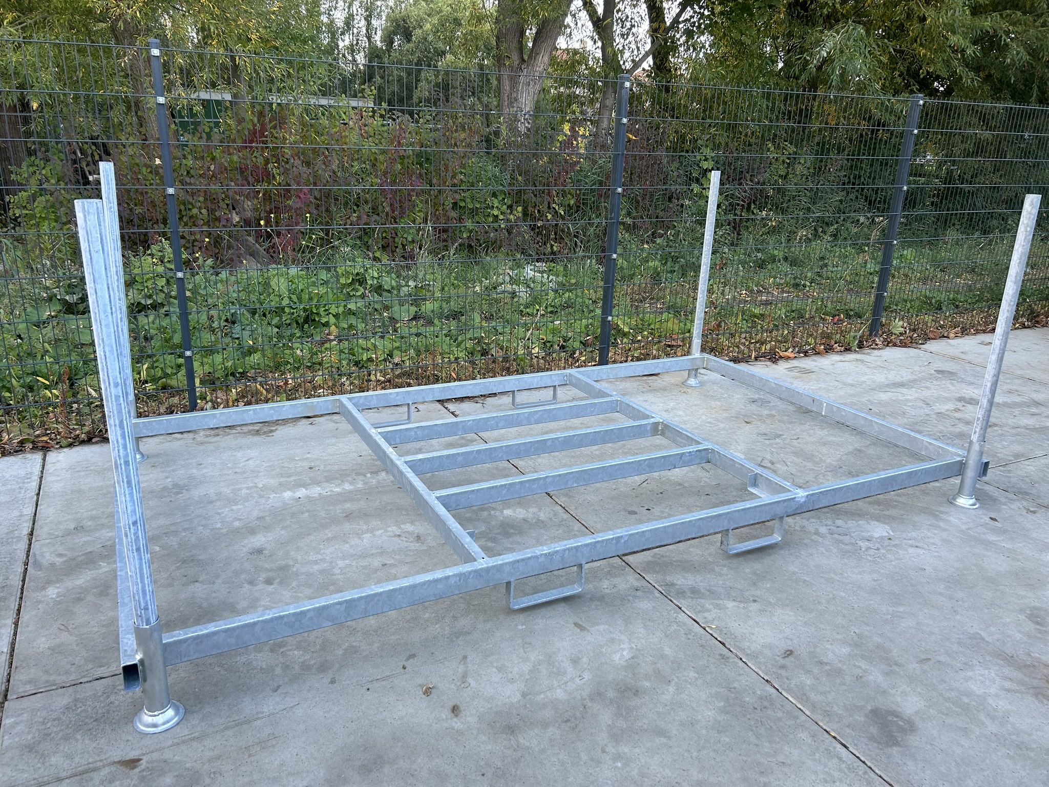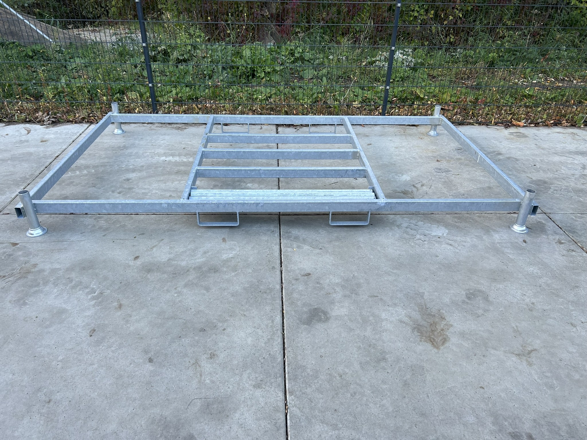 Type: Zwaar model bouwhek opslagrek Inrichting: Bouwhek opslag Cappaciteit: 25ST bouwhek Afmetingen: 347x200x28CM Kokermaat: 80x40MM Eigen gewicht per stuk: 100KG Max. draagvermogen/hijslast: 1000KG Prijs bouwhekbok zwaar model: €385.00 Prijs rong 130CM: €8.25