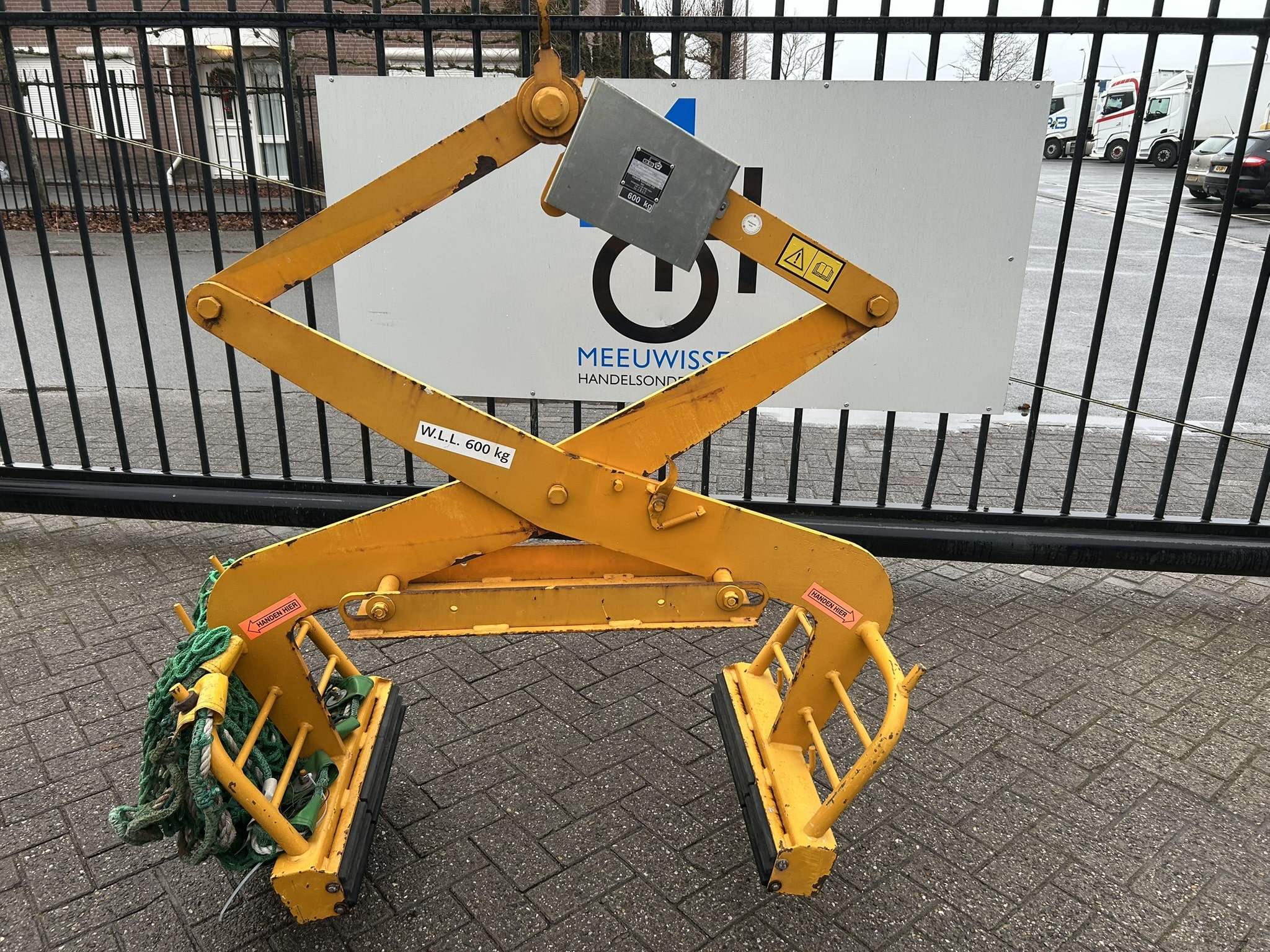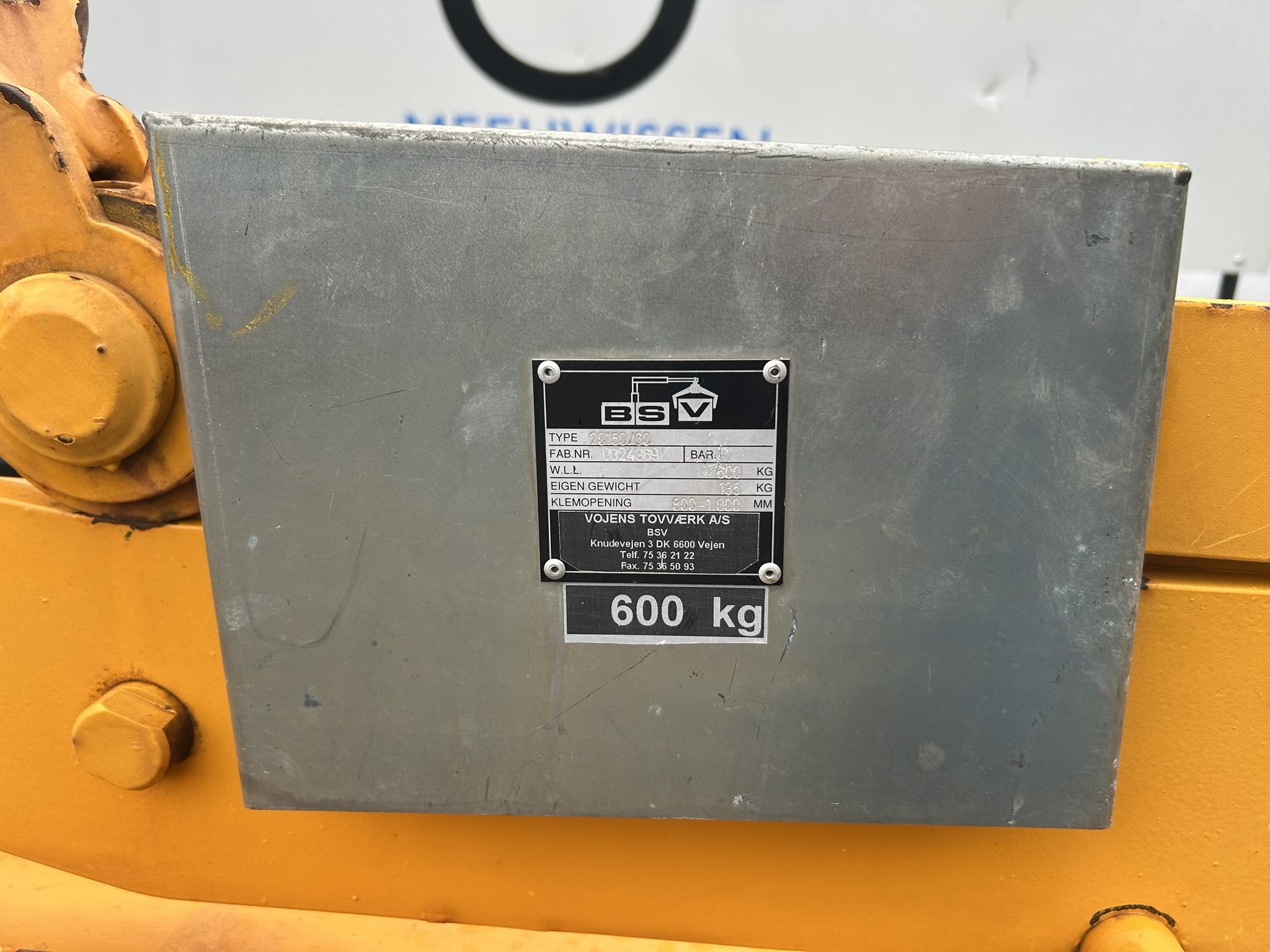 Merk: BSV Type: 20150-60 Uitvoering: Kalkzandsteenklem Draagvermogen: 600KG Eigen gewicht: 135KG Klemopening: 800-1000MM Klembreedte: 600MM Klemhoogte: 400MM Conditie: Netjes, gebruikt