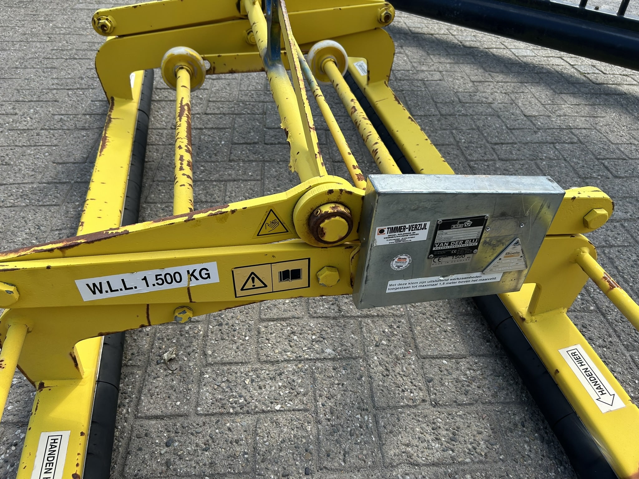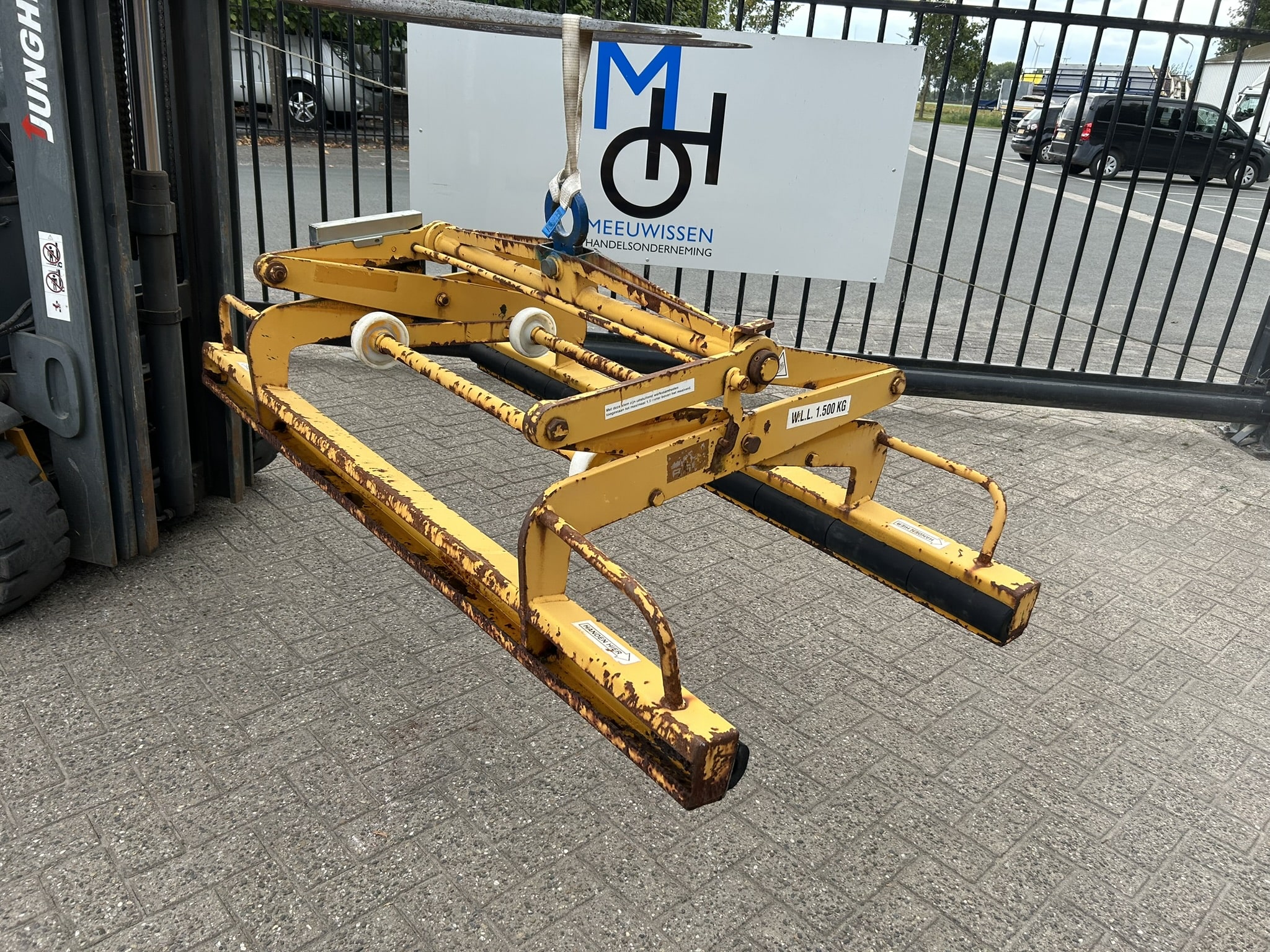 Merk: BSV (Van Der Blij) Type: 406/180 Staat: Gebruikt, netjes Maximaal hefvermogen: 1500KG Eigen gewicht: 150KG Klemopening: 400-650MM Inwendige hoogte: 200MM Staat klemrubbers: Zeer netjes Lengte: 180CM Breedte transportstand: 90CM Hoogte transportstand: 65CM Prijs foto 1t/m 8: €650.00 ex BTW Prijs foto 9 t/m 10: €450.00 ex BTW