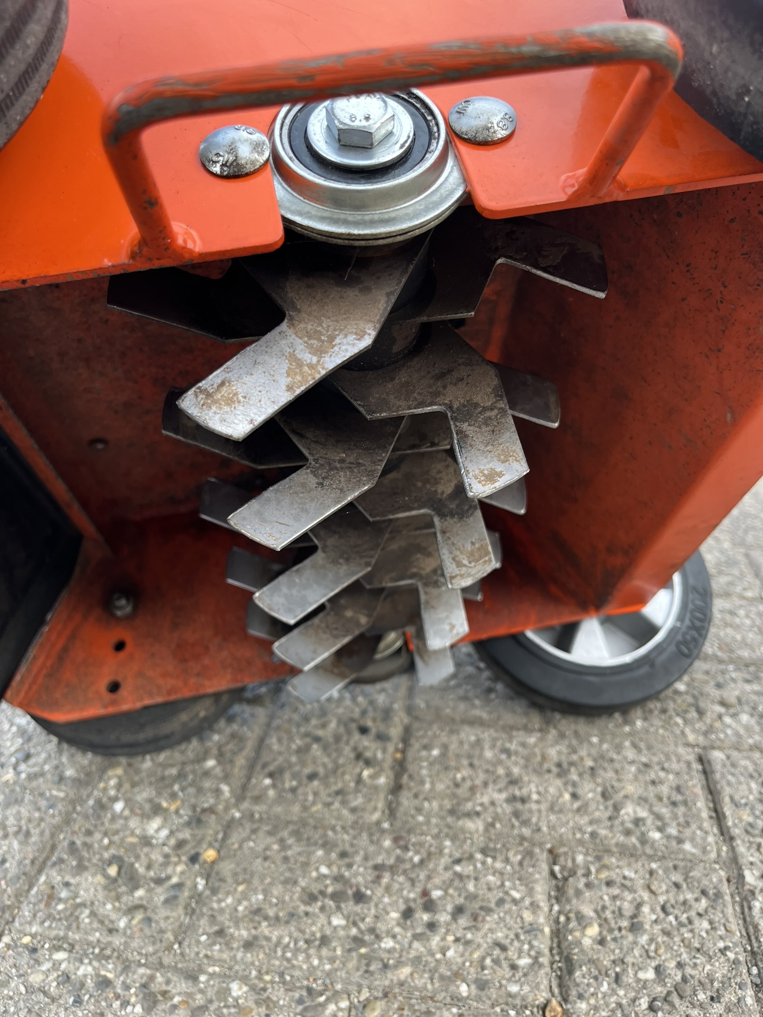 Nette, gebruikte Eliet E401 elektrische verticuteermachine, werkend op 230V.