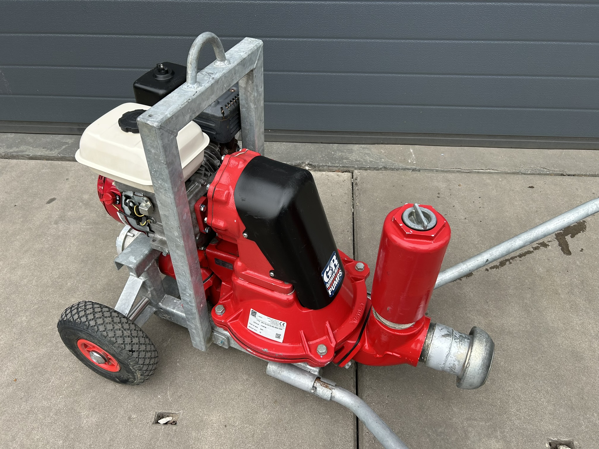 Hele nette, jong gebruikte Gorman-Rupp benzine membraanpomp, aangedreven door krachtige Honda GX120!