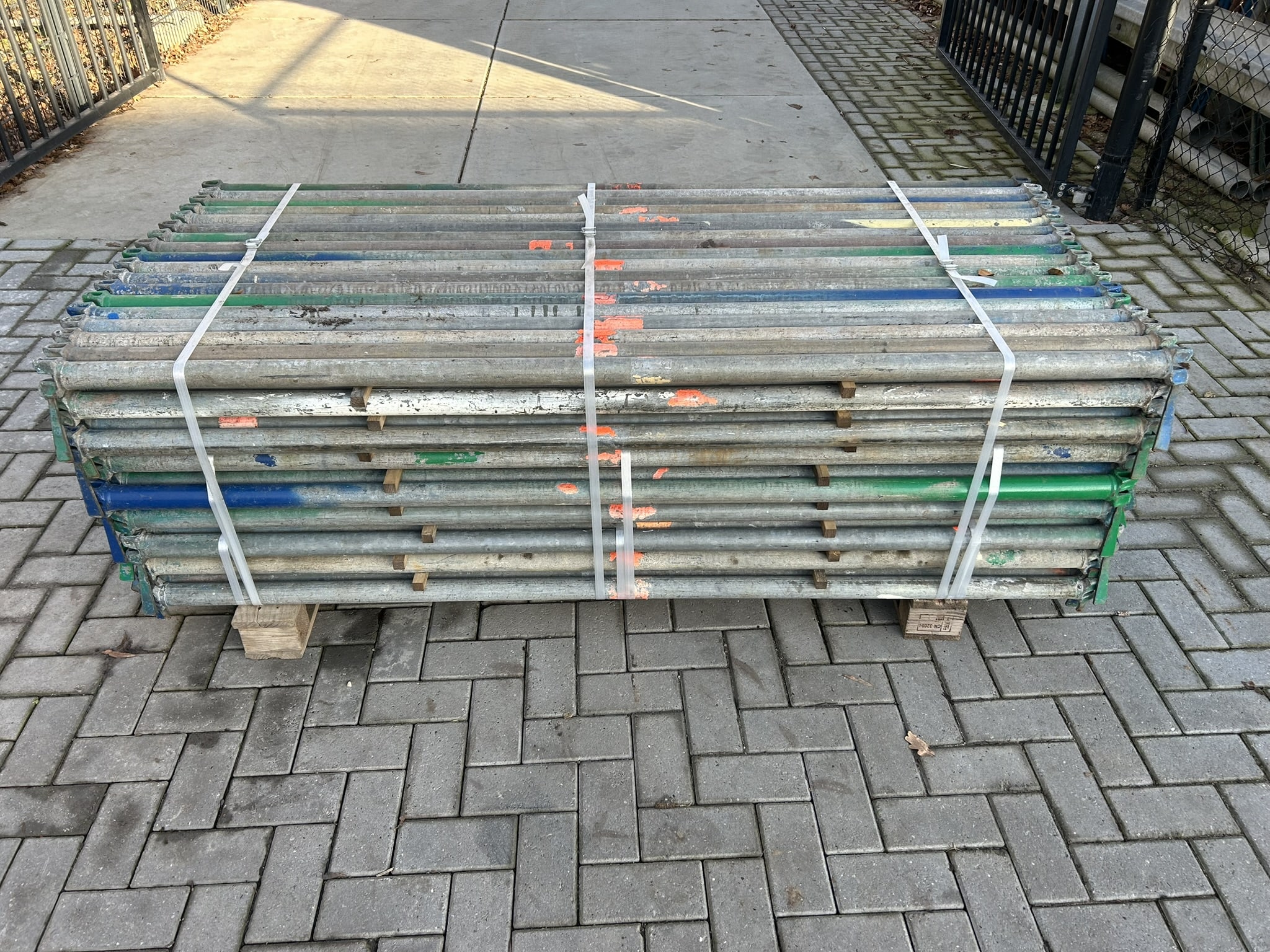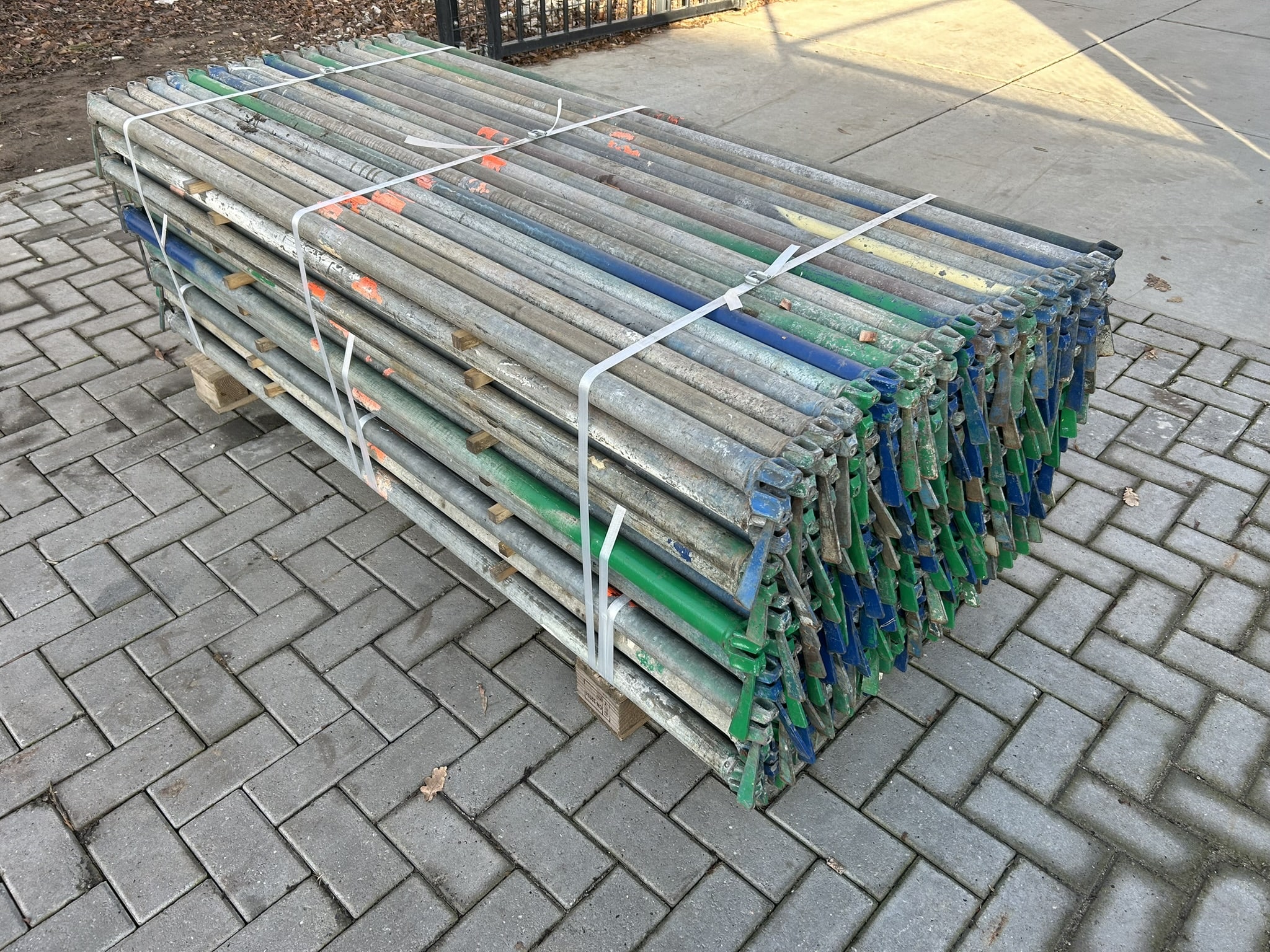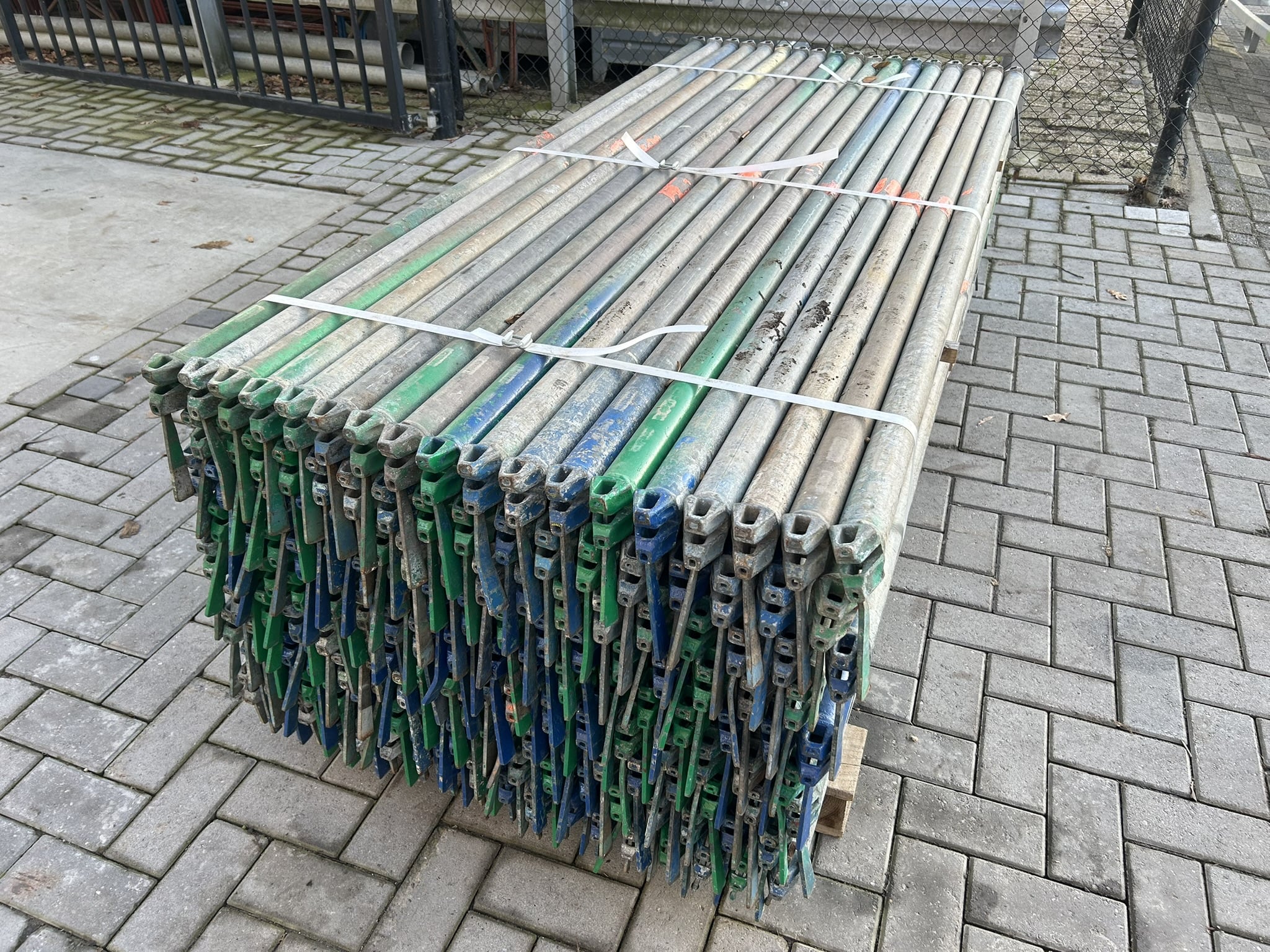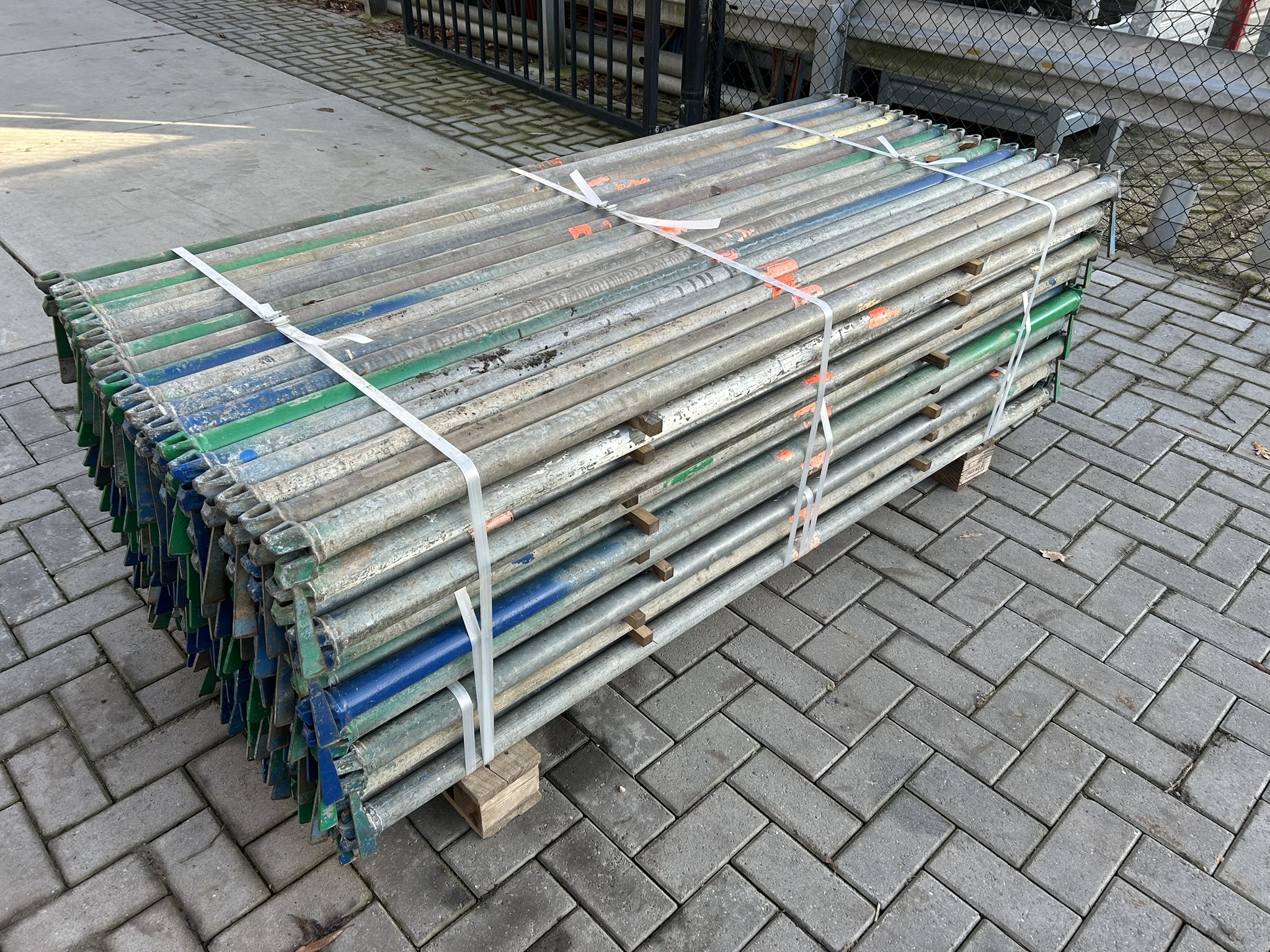 Gebruikte originele Layher Allround 2.07M liggers en roostervloeren, meerdere pakketten beschikbaar.