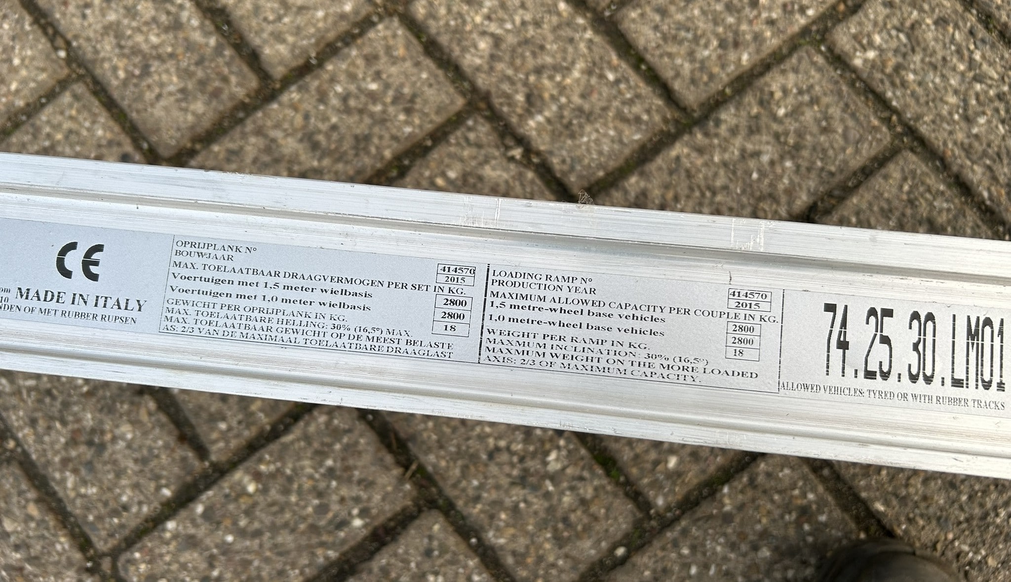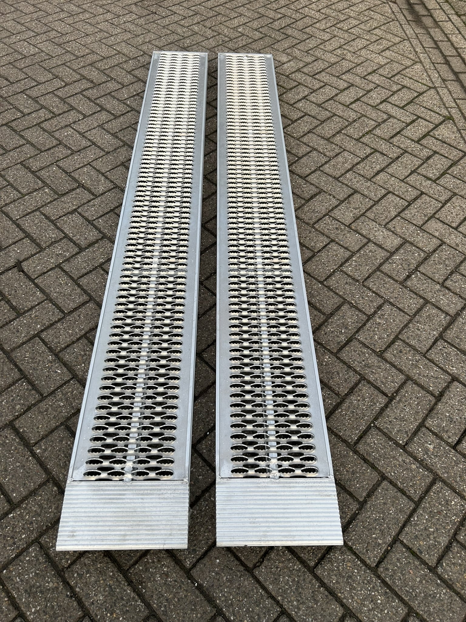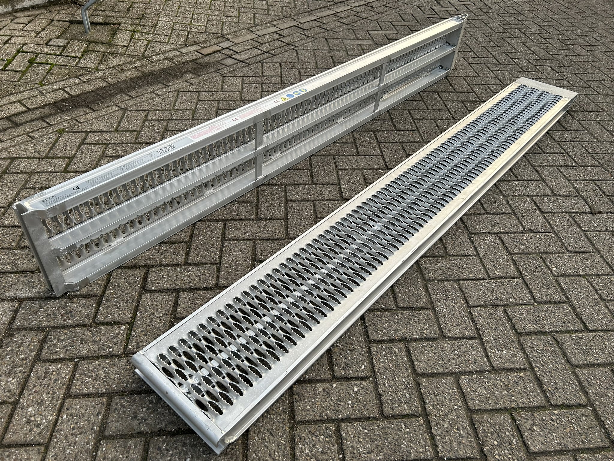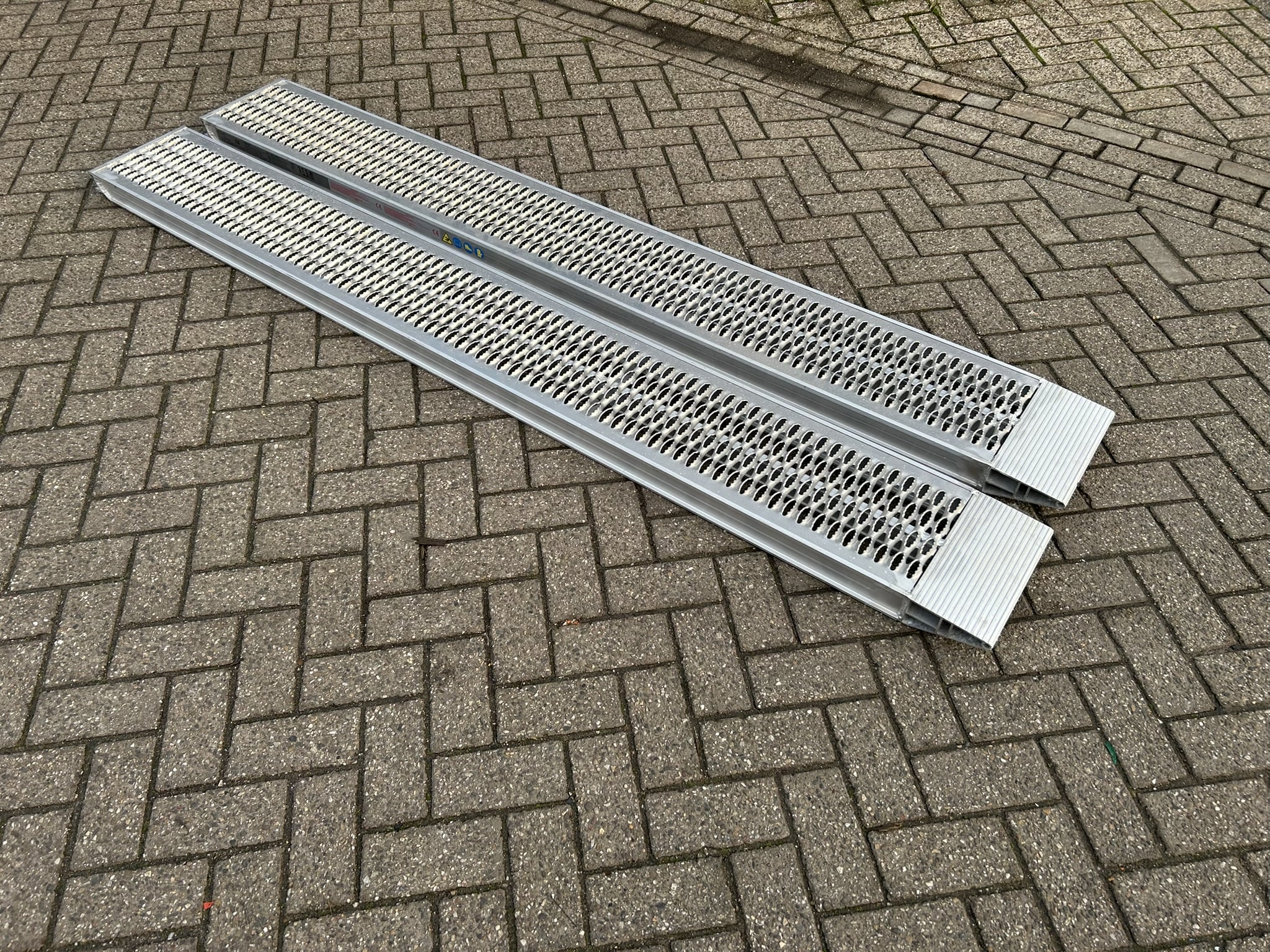 Nieuwe, ongebruikte set Saris aluminium oprijplaten.