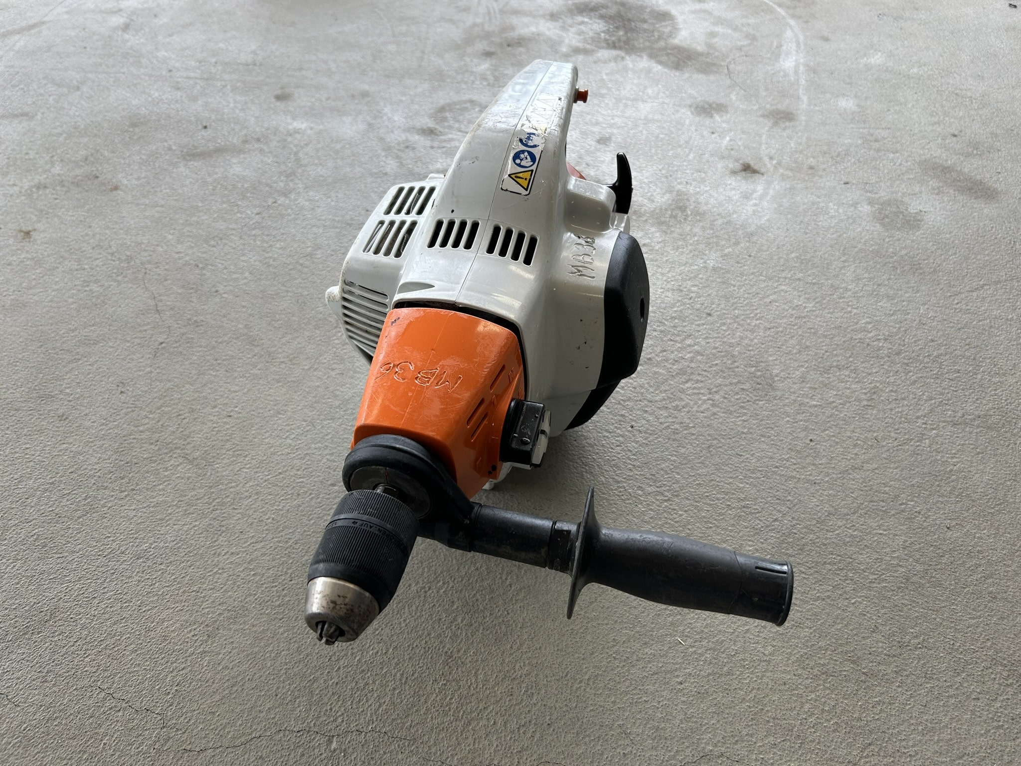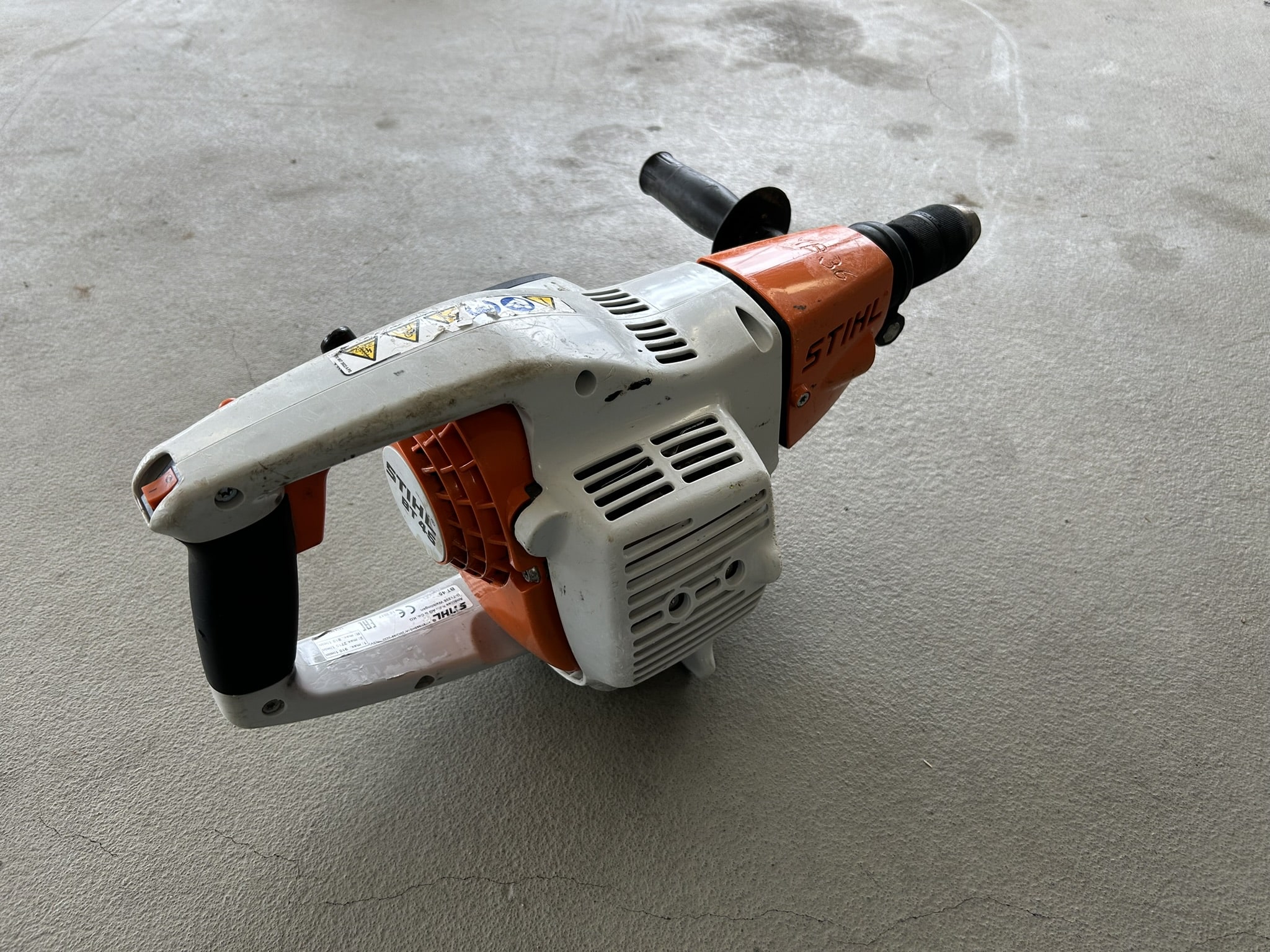 Gebruikte, goedwerkende Stihl BT45 plantgat boormachine werkend op benzine.