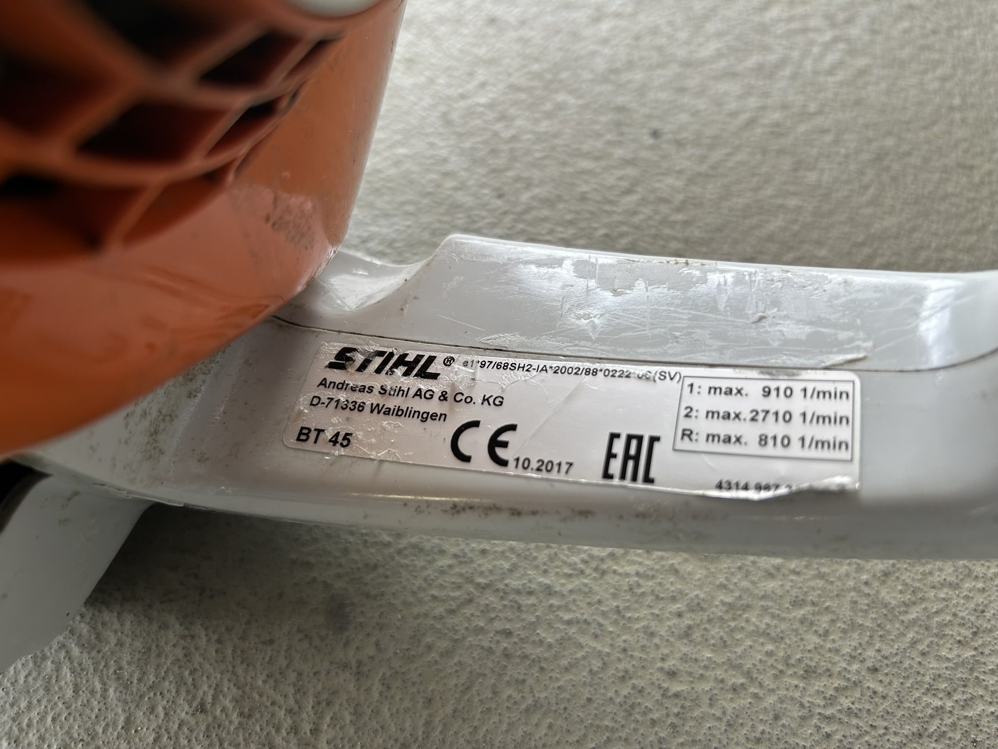 Merk: Stihl Type: BT45 Staat: Gebruikt Type motor: 2-takt, 27.2CC Motorvermogen: 1.3PK Prijs BJ2017: €350.00 ex BTW Prijs BJ2005: €275.00 ex BTW